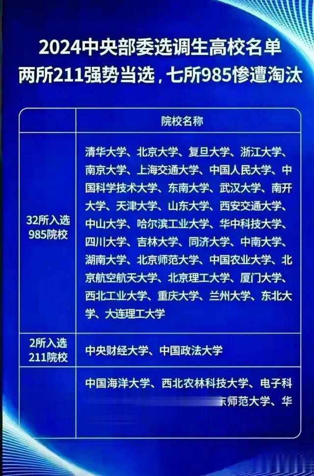这份高校排名名单与2024年中央部委选调生高校名单基本相吻合。